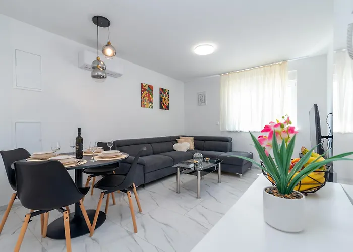 Une cuisine équipée dans la propriété Apartment Cvit est équipée d'un four et d'un lave-vaisselle. L'arrêt de bus le plus proche est Seget Donji, situé dans une zone de 800 mètres. Ce site a une terrasse avec vue sur le jardin.